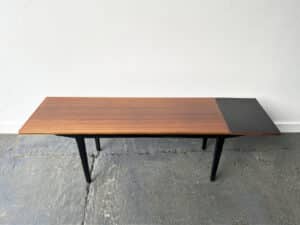 Designed by Lucian R Ercolani, the Ercol Old Colonial table is an earlier and rarer design than more recent Ercol tables. Produced in the 1960’s It has the ‘blue label’ which was only used between 1955 and 1975. It is well used but in great condition, the solid elm top has distinctive wood grain. The leg frame is solid beech with ridged detailing which is unique to the Old Colonial.