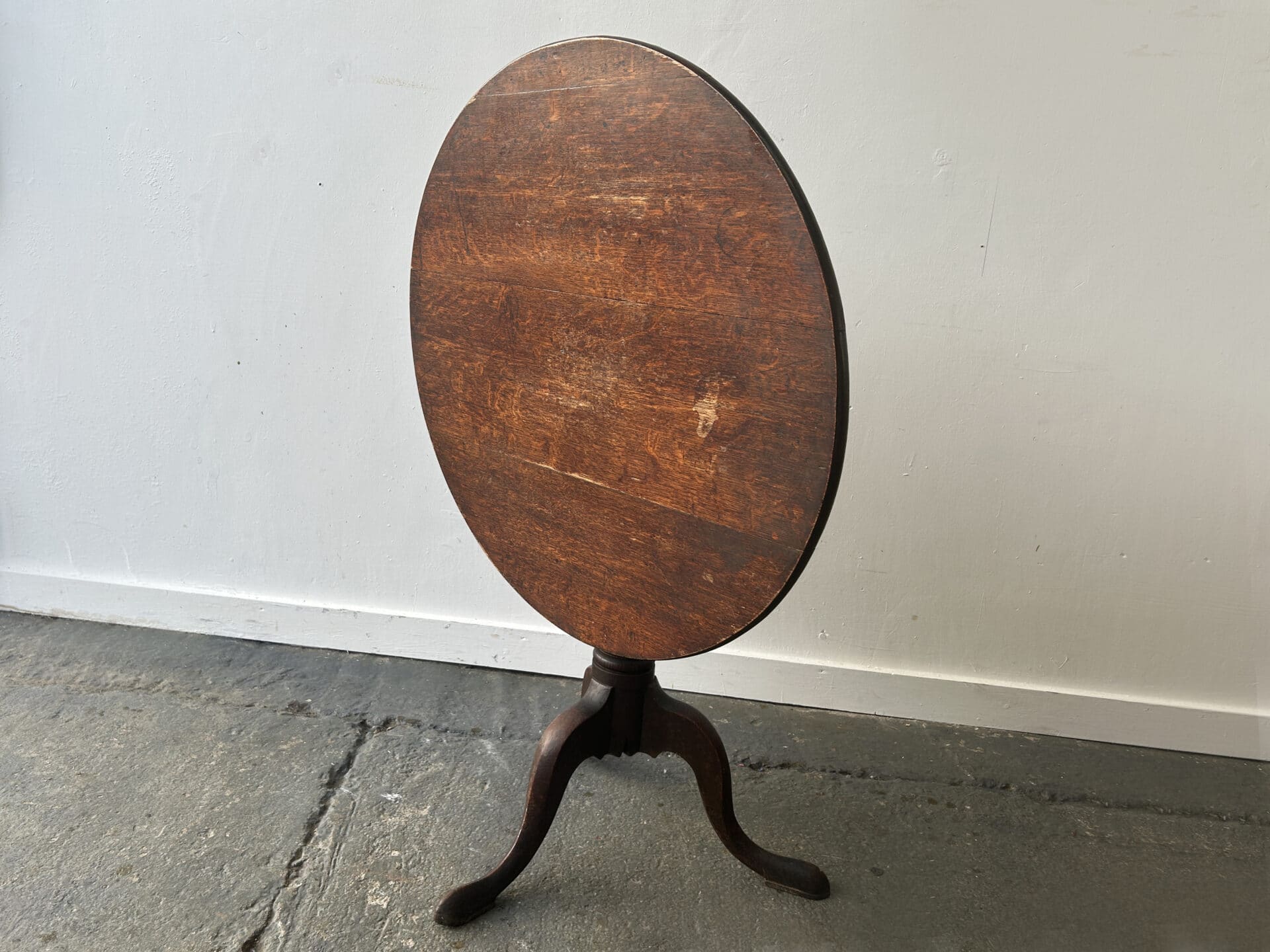 The top has a, well-worn grain with an aged patina consistent with long use. The design is Georgian influenced, but likely produced in 19th–early 20th century.