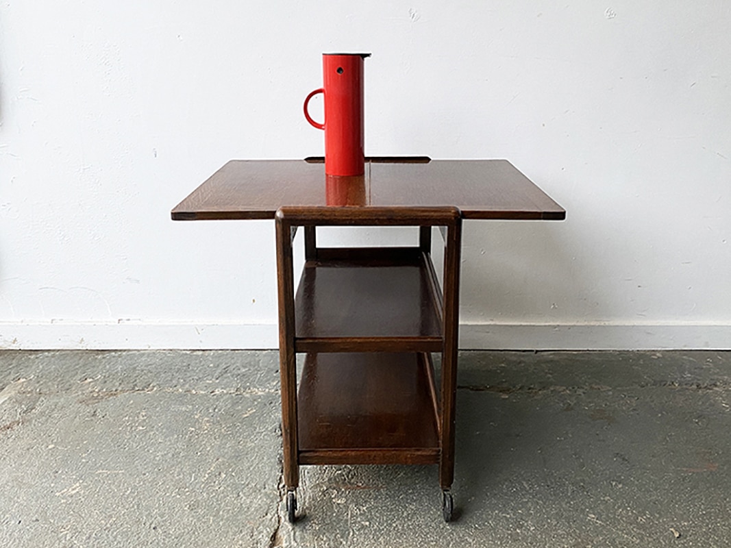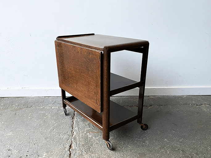 An early 20th century 1930s tea / drinks trolley or side table. The table top extends by lifting up the flap and sliding across. Ideal for smaller spaces.